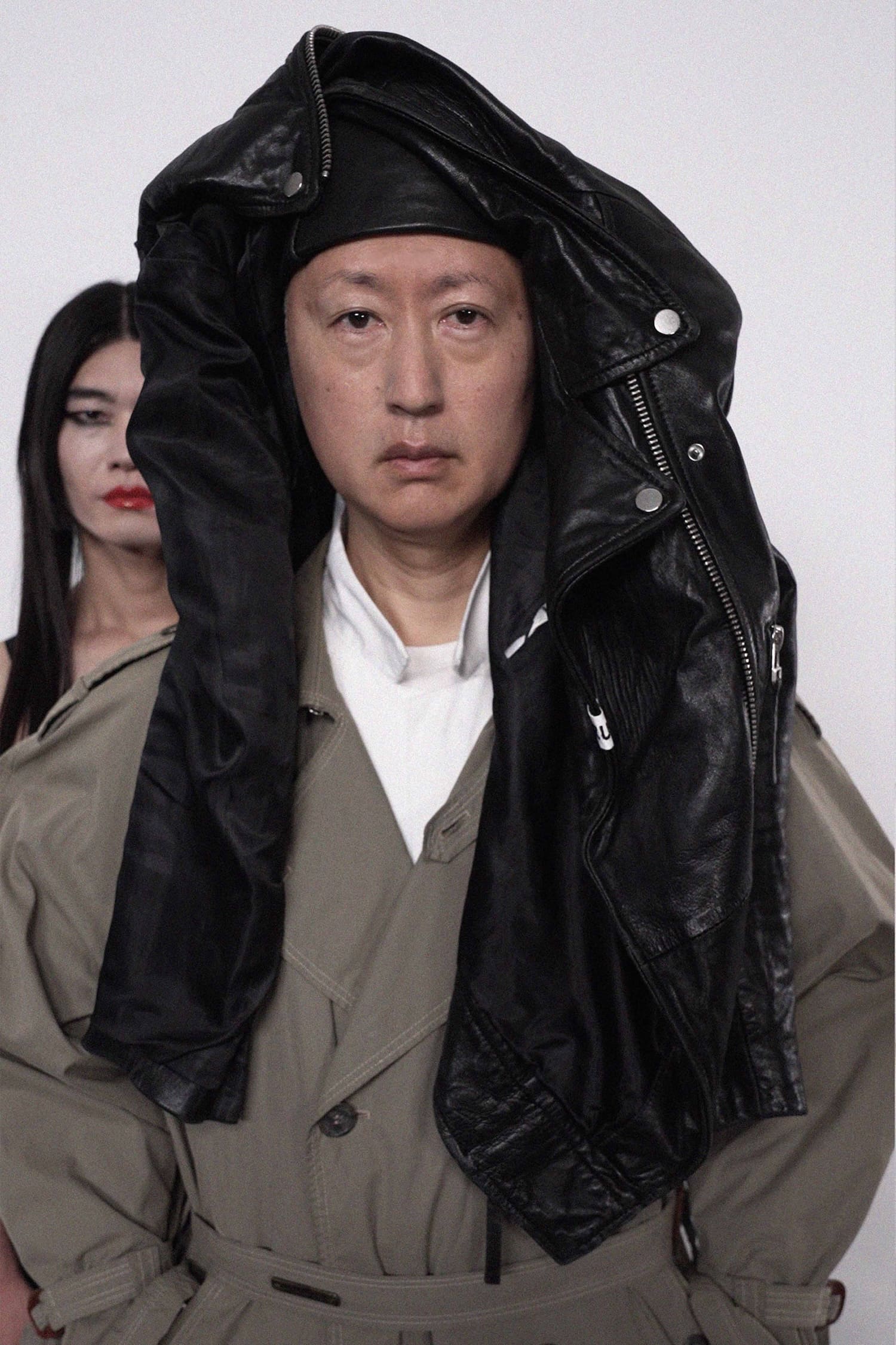SCULPTED HAT CRAFTED FROM UPCYCLED BIKER JACKET